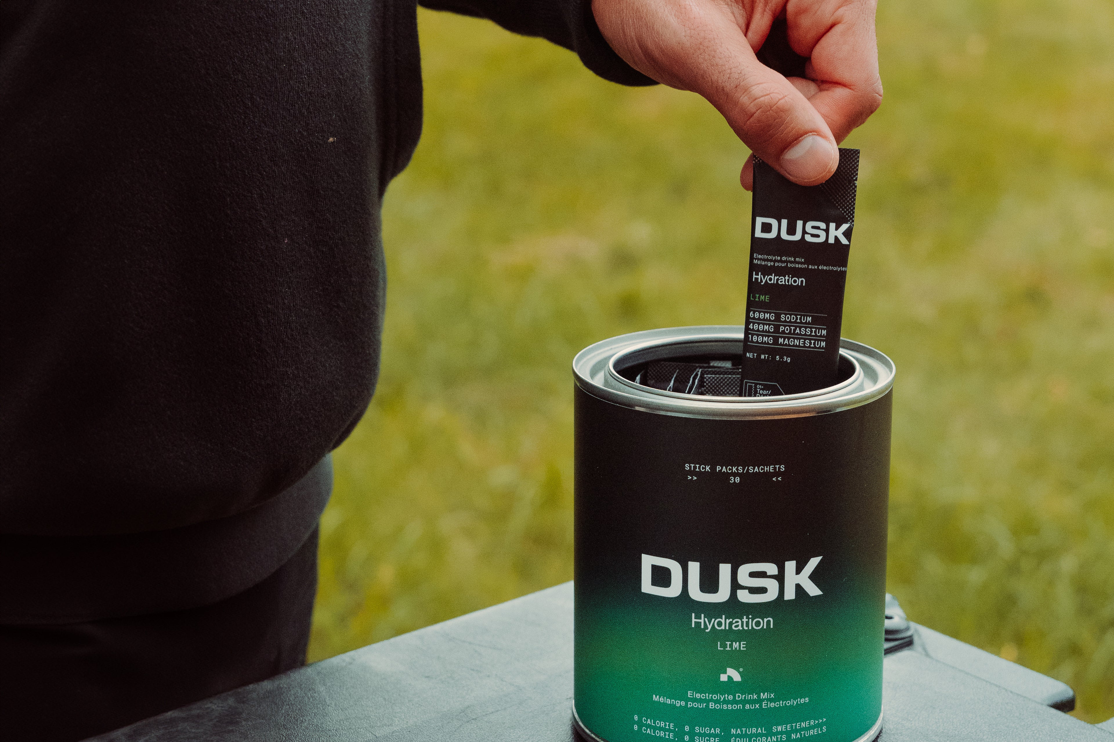 Each stick pack of DUSK Hydration contains 600mg of sodium. Sodium is an essential mineral that carries electrical charges in your body. Sodium also regulates fluid balance, which is at the core of hydration.